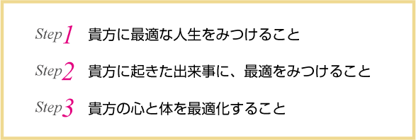 貴方の心と体を上手に使いたい方、ステップ3にお進みください。
