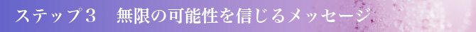 貴方の無限の可能性を、毎日感じて過ごすことは、人生を有意義に創造する第一歩です。毎日貴方の潜在意識に、無限の可能性を思い出させるだけで、貴方の可能性はグンと広がります。